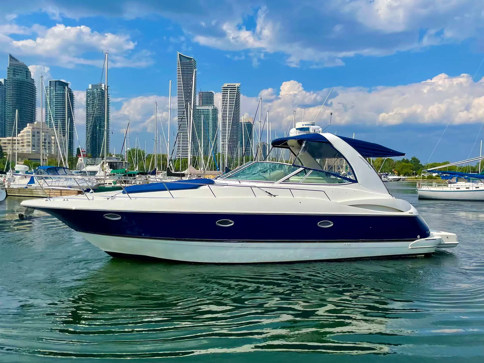 Presenting a rare opportunity to own a truly unique vessel. This 2001 Cruiser Yacht is equipped with the priceless TWIN YANMAR DIESEL ENGINES. This yacht was originally configured to the highest possible specification at the time of purchase, with an additional $140K upgrade for the premium engines, upholstery, finishes and more!Furthermore, the boat is fully outfitted with a state-of-the-art JL Audio sound system, delivering exceptional sound quality throughout.