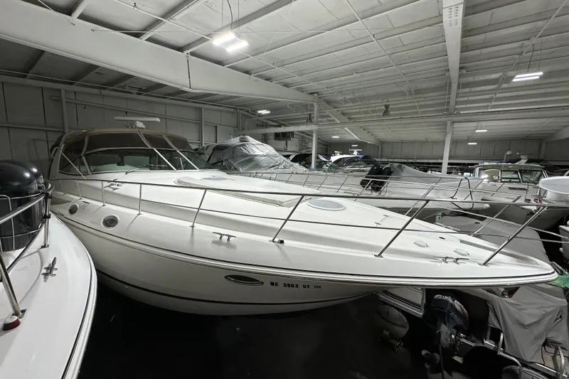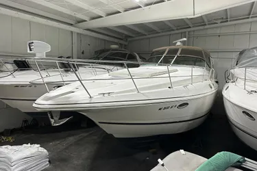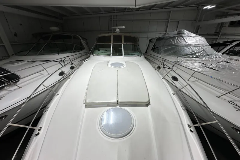 The Cruisers 3870 Esprit offers a departure from traditional midcabin "cave" layouts, providing the same second cabin accommodations as the 4270 Esprit, and a wide-open layout rivaling most aft cabin motoryachts. The 3870 has accommodations to sleep six comfortably. The forward stateroom features a queen-sized island berth and ample storage for cruising. The second cabin's twin double berths can be converted to a king-size bed with the addition of a self-storing filler cushion. This cabin is accompanied by a private head and changing area with full-standing head-room, located behind a bulkhead door. The salon includes a convertible dinette - double berth with crescent-shaped leatherette seating and dining table. The galley has all the amenities, including a large refrigerator and freezer, a microwave oven, and a double-burner electric stove. The salon provides plenty of natural lighting to provide an open, airy feel. An added convenience, the main head offers a separate stand-up shower with full headroom. The 3870 features a large cockpit with removable wrap-around rear seat, well appointed wet bar and optional extended swim platform to accommodate all the water toys. Twin 7.4 MerCruiser inboards achieve a top speed of 36 mph and a cruising speed of approximately 25 mph, making the 3870 ideal for those interested in express performance and quality interior accommodations.