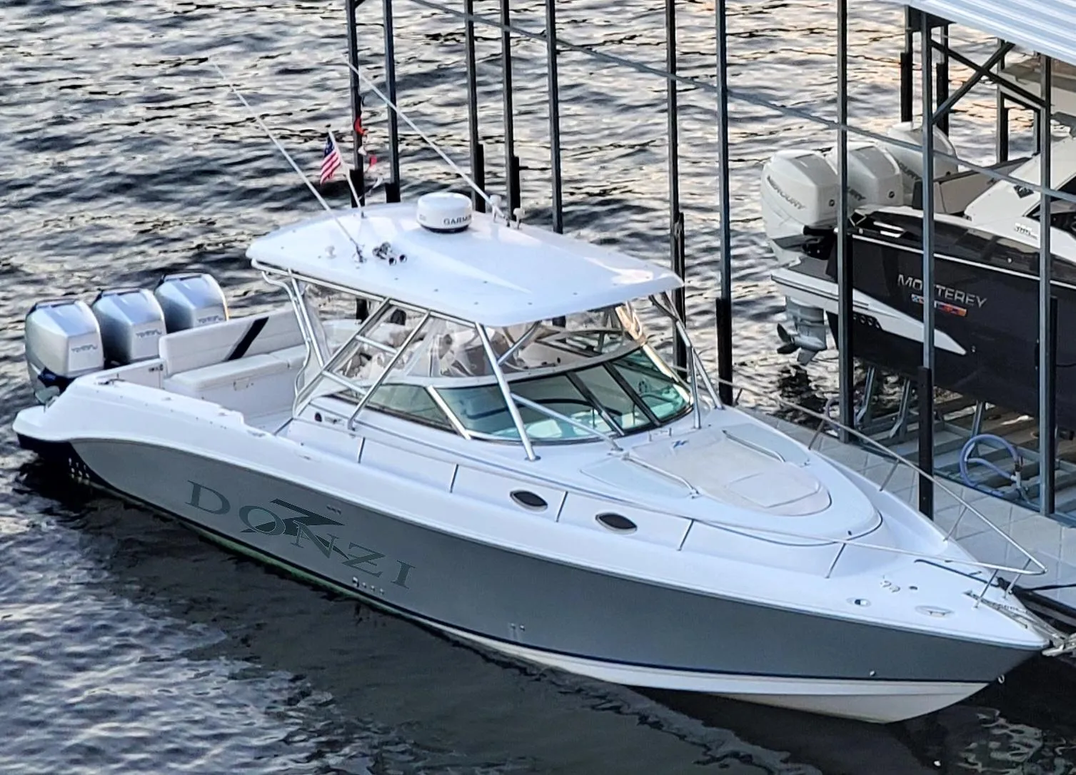 The Donzi 38 ZSF is one of the most versatile boats on the water. While there may be other boats out there of similar size, none of them offer anywhere near the same combination of amenities and all-out performance that puts the 38 ZSF in a class all its own. This dynamic model is equal parts fisherman, day boat, luxurious overnighter, and offshore performance boat. From its well-appointed fishing cockpit, to its comfortable wraparound seating areas, to its inviting cabin replete with amenities, the 38 ZSF sees to your every need.
