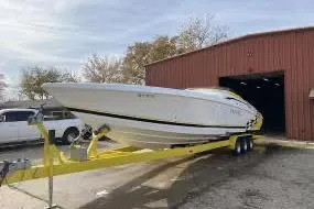 This 2002 Donzi 38 ZX Daytona is a true offshore performance classic—aggressive lines, Daytona graphics, and the power to match. Powered by twin Mercury Racing 575 SCI engines with just under 500 hours, this 38 ZX delivers big-block sound, strong acceleration, and the performance Donzi is known for. Both engines were recently serviced less than 20 hours ago.