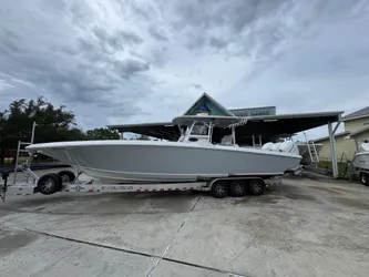 LIKE NEW 2022 Fountain 38 CC powered by Triple Mercury 400 Verado's with ONLY 12 Hours! This Boat Has Been Kept In An Air-Conditioned Warehouse Since New! Trailer Available For Purchase. Highlighted Features of this boat are listed below:
