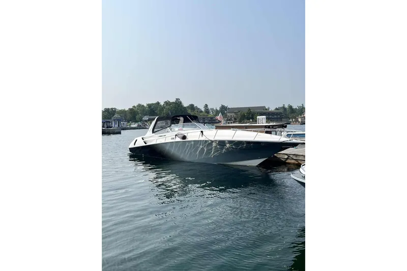 This freshwater 2006 Fountain 38 Express Cruiser is arguably the best example on the market. Powered by twin 525 HP Mercury Marine big blocks with complete professional rebuilds and only ~17 hours since, she delivers true Fountain performance with reliable power. A new Bravo 3 starboard outdrive (2022), new SeaDek-style flooring, and a JL Audio sound system (controlled from galley, helm, and swim platform) take the cockpit experience to the next level. Below, you’ll find a comfortable cabin with double berth, mid-cabin sleeper, galley, and generator-powered air conditioning for overnighting. She is rare, meticulously maintained, turn-key package - ready to elevate your summer!