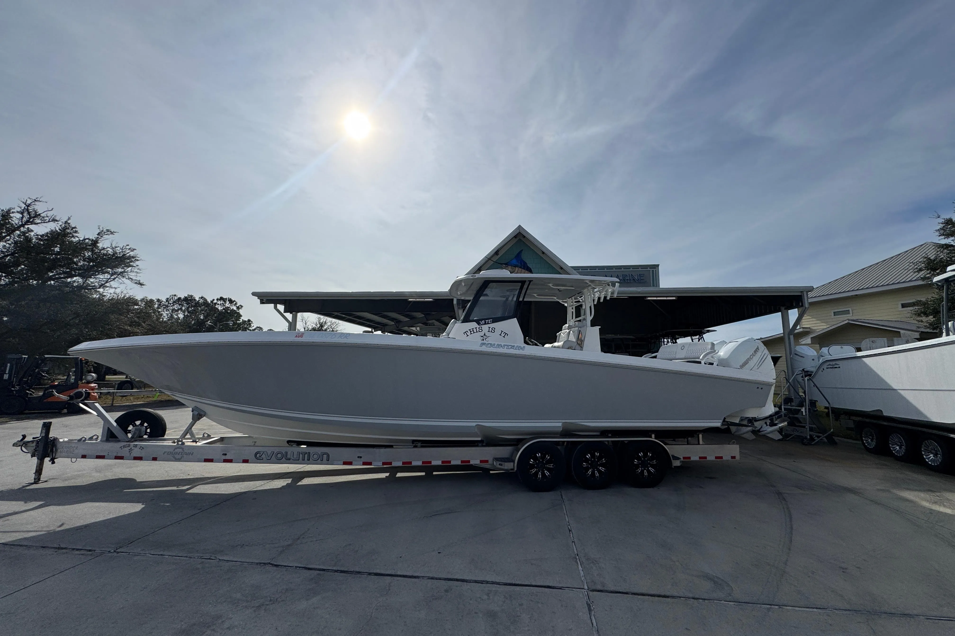 2023 Fountain 38 TE powered by Triple Mercury 400 Verado's With 475 Hours! Evolution Trailer Included With Purchase! Highlighted Features of this boat are listed below: