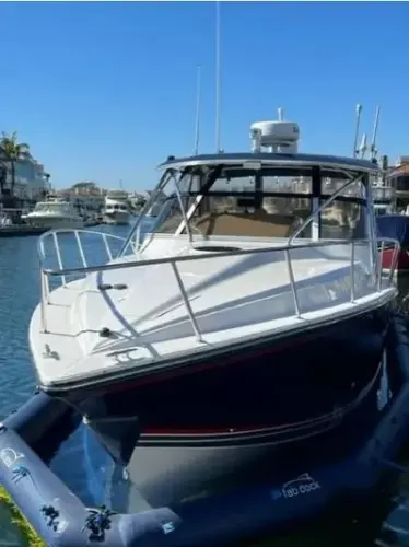 Below, the stateroom sports a double V-berth bed, built-in dresser, cedar-lined hanging locker, stand-up head with a shower and VacuFlush toilet, and a galley with sink, microwave oven, and refrigerator/ freezer. The salon area provides comfortable seating for four, a removable table, a TV, stereo, and DVD/CD player, and an aft cabin with sleeping accommodations for one or two, depending on the sleeper's size.