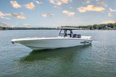 With the launch of the incredible 38SC, the next-generation of Fountain High Performance V-Bottoms is speeding on the scene. High performance boat buyers can now enjoy the roominess of a center console, the dependability of outboards and the top-end performance that has made Fountain the fastest name in boating for more than 40 years. Don't look now but with it's 100 mph top-end potential, the 38SC certainly must be considered the fastest stock center console under 40-feet on the water today. Bold graphics inside and out scream "speed." Premium Cool Touch upholstery with color coordinated thread showcase Fountain's incredible attention to detail.