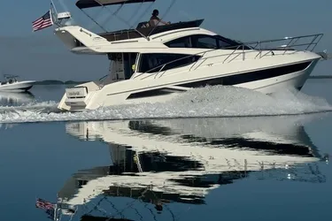 This 2017 Galeon 380 Fly stands at the top of its class with award-winning design, luxurious European craftsmanship, and remarkable interior volume for a 39’ platform.