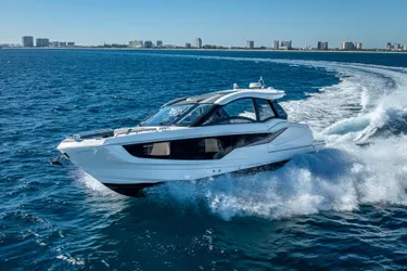 Whether you like to race around in open water at 50 mph or raft up on a lazy Sunday afternoon, the Galeon 375 GTO is the boat for you. This sleek, sporty, and versatile cruiser can do anything you ask of her. And she can do it with plenty of room to spare for your favorite people, thanks to a spacious lounge in her bow, a cockpit equipped with Galeon’s famous Beach Mode expandable decks, and highly comfortable accommodations. The sky is truly the limit when it comes to the 375 GTO.