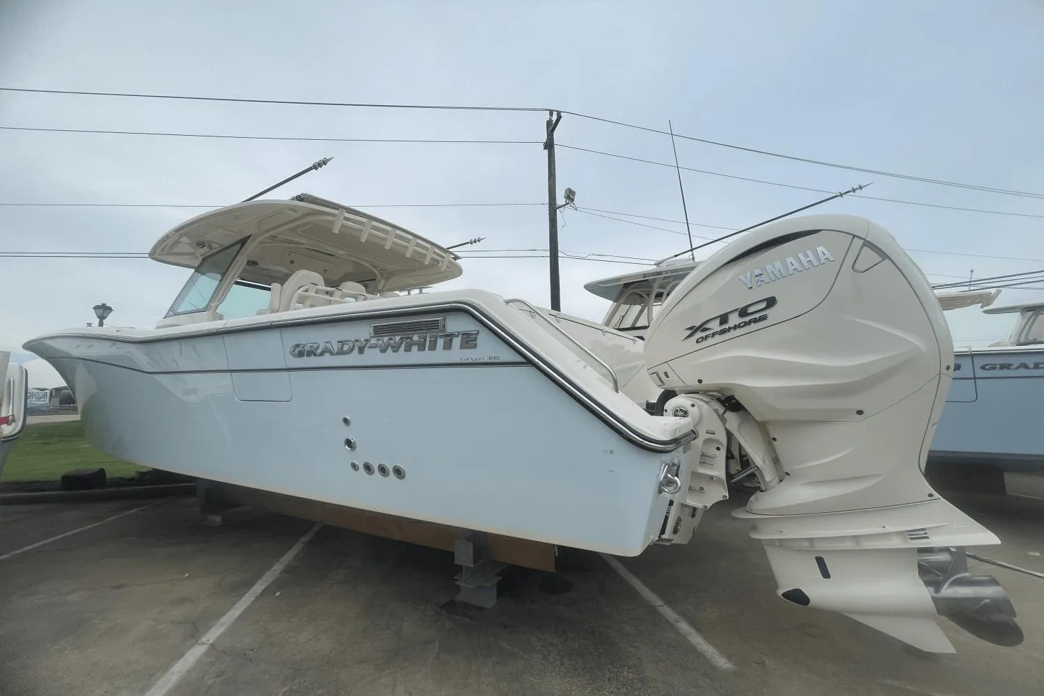 - Triple Yamaha F450 FM Outboard Power: This Canyon 386 is propelled by a formidable trio of White Yamaha F450 FM (Helm Master EX compatible) outboard engines, delivering an astounding 1350 total horsepower. These next-generation V8 XTO Offshore engines provide incredible speed, relentless torque, and unparalleled reliability for long-range offshore runs. Their "FM" designation ensures full compatibility with Yamaha's Helm Master EX system, offering seamless joystick control, digital electric steering, and SetPoint™ functions for ultimate command and effortless docking.