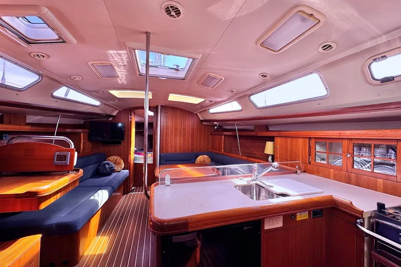 - Headroom: 6’-6” with lots of opening hatches and ports for abundant light and breeze underway or at anchor