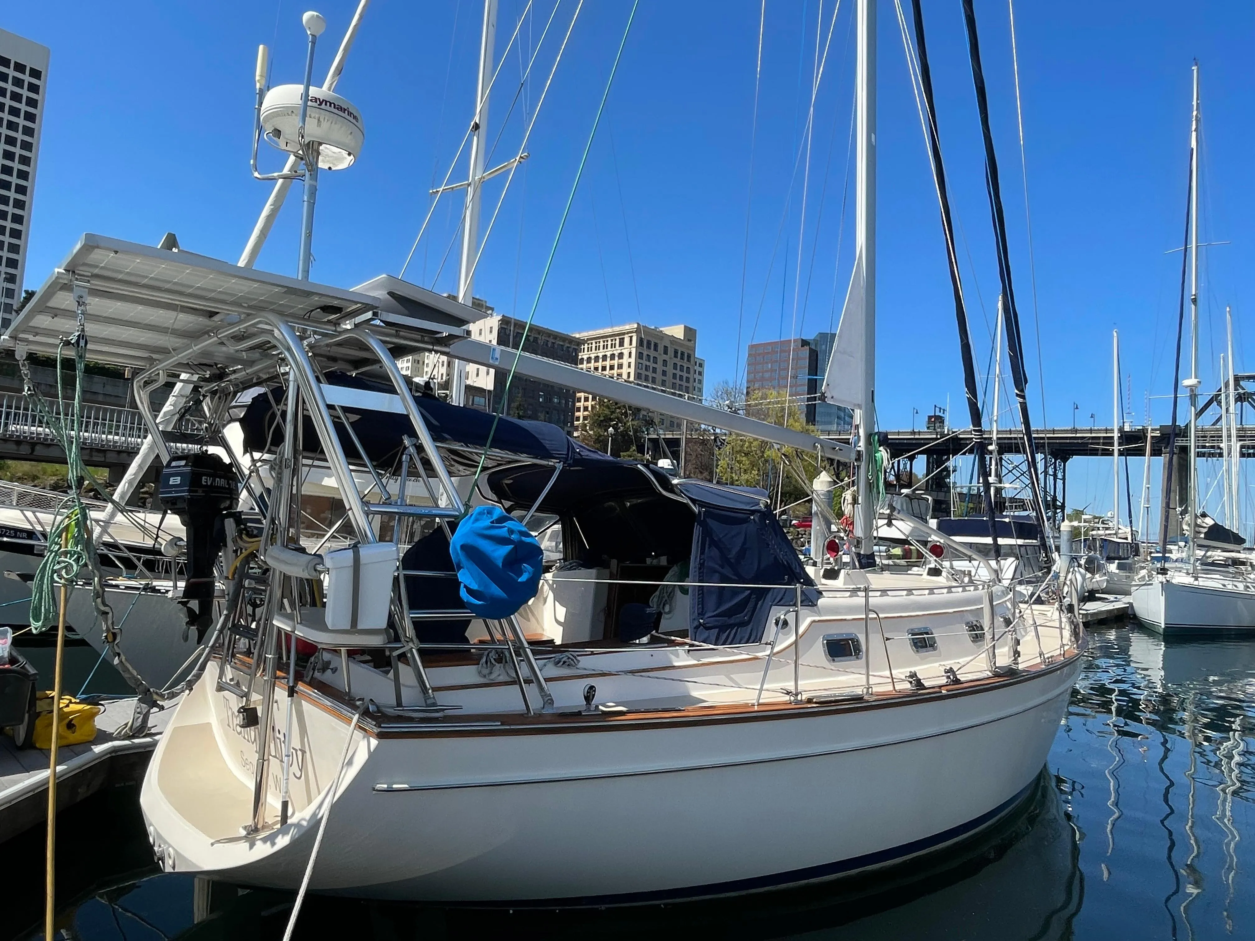 The third proud owner keeps the boat in beautiful Tacoma marina and the slip is assumable! Tranquility was originally sailed in San Francisco area, then for ten years in Michigan fresh waters and stored in a custom cradle indoors for the winters!