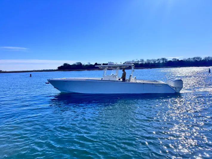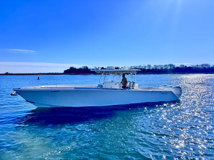 This is a rare oppurtunity to own a one off custom Jupiter. This boat was originally constructed by Jupiter to be a yacht tender and features a unique wrap around lounge on the bow with removable cushions. This vessel features teak accents throughout the boat on the deck and the tops of the gunnels and bow.  There is a full size head with macerating toilet, removable cushions for the bow seating, a powerful stereo, windlass, bow thruster, rod holders, outriggers, and garmin electonics coupled with the legendary Jupiter ride and a brand new triple axle trailer. This unique vessel is ready for its next adventures on the water. Call Captain Hatch Perry at 9198012136 with any questions or to schedule a showing today.