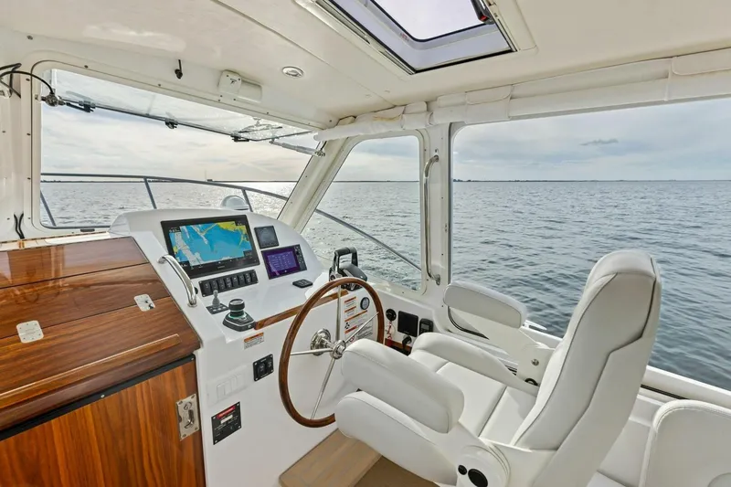 The 2025 MJM 35 delivers unmatched versatility and performance with an indoor/outdoor pilothouse, best-in-class stability, and the swift, soft ride of a Doug Zurn hull. Twin Mercury Verado outboards with joystick piloting and Skyhook provide quiet confidence, shallow-water capability, and easy ownership, while a high-tech composite build, flush deck design, full wet head with shower, and 50-mph top speed set a new standard in the 35-foot class.