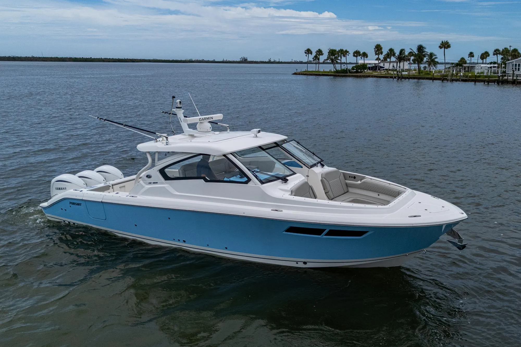 The stylish dual console boat line that has been perfected by Pursuit now includes the DC 365. More comfort, innovation and features have been engineered to bring your sport utility experience to the next level. Forward bow and port side lounge seating, a swivel seat at the helm and patent-pending fold away seating at the transom and under the gunwale give your crew a comfortable place to enjoy whatever type of water activities you choose.