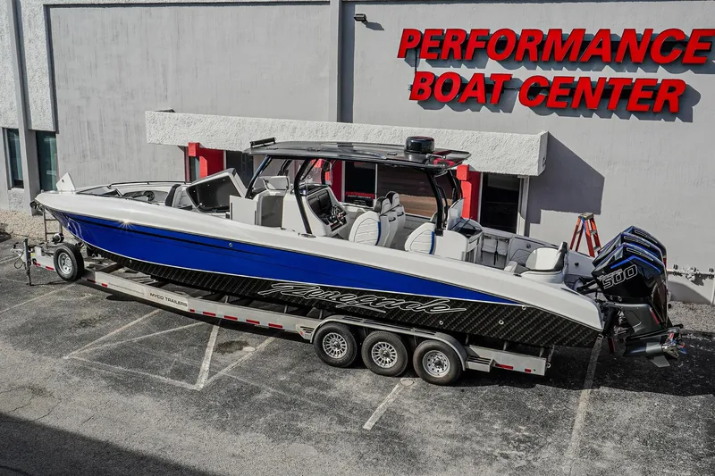 2024 Renegade 38 Open, with triple Mercury 500Rs (205 Hours) and warranty until 5/2029! The aluminum triple axle Myco Trailer is included. This fully optioned Renegade has additional options such as Night Vision Camera, Light Bar, Dual Garmin GPS Units, Garmin Display at the rear cockpit, Great Stereo System with JL Audio components, Cockpit Refrigerator, Air Horn, Upgraded paint with a fully painted hard top with skylights, Fresh Water Shower in Hard Top, Drop Down Side Door with Boarding Steps, Anchor Windlass System, and Bow Thruster. The boat is in excellent overall condition. Located in our Ft. Lauderdale Location for easy inspection. All Renegade 38s have a 9' beam making transport and storage easier. This Renegade is aggressively priced for a quick sale.