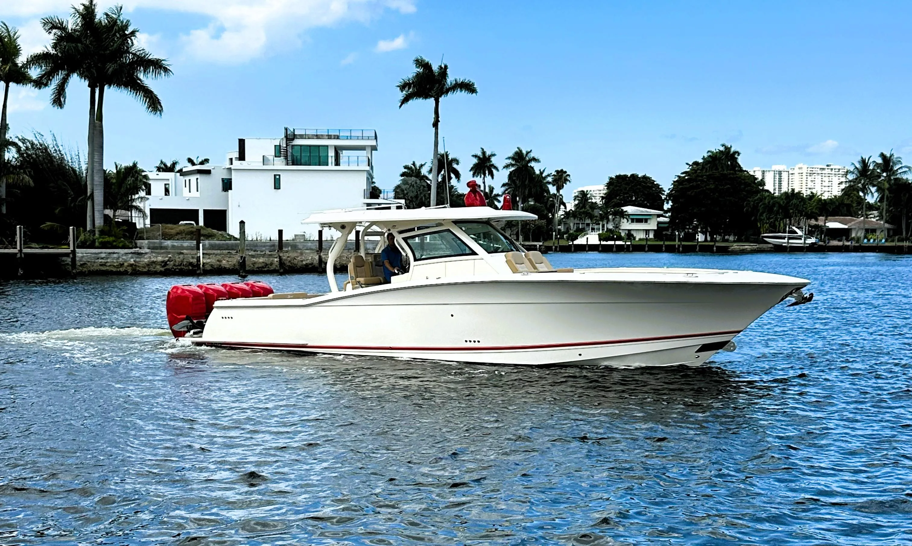 Introducing this 2020 Scout 380 LXF, a remarkable center console boat that combines performance and luxury. With an overall length of 38 feet, this vessel features a sleek composite hull designed in a deep Vee shape, ensuring stability and agility on the water. Powered by four robust Mercury Verado outboard engines, each delivering 350 horsepower, it promises exhilarating speed and responsiveness, perfect for both leisurely cruising and adventurous outings. Equipped with joystick control, maneuvering this boat is a breeze, enhancing your boating experience. The 380 LXF also includes a well-appointed head, ensuring comfort during longer excursions. This used model has been maintained with care, boasting only 335 hours of engine use, making it a fantastic choice for those seeking a reliable and stylish vessel. Experience the perfect blend of performance and elegance with the Scout 380 LXF, ready to take you on unforgettable journeys.