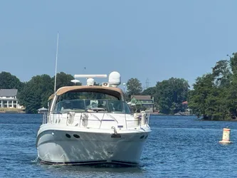 The 380, with her 13' beam, has a very spacious layout both in the cabin and the cockpit. The cabin has a wide-open floor plan with excellent storage and a superb galley with a full- size refrigerator. There is a double berth forward with a privacy door. The mid-cabin is a conversation area and converts into a double bed, electrically, and has a privacy curtain. The salon sofa also converts into a double berth for extra guests. The roomy cockpit features wraparound seating for 6 or 7 and comes with a wet bar. The cockpit table can be removed to convert into a sunpad.