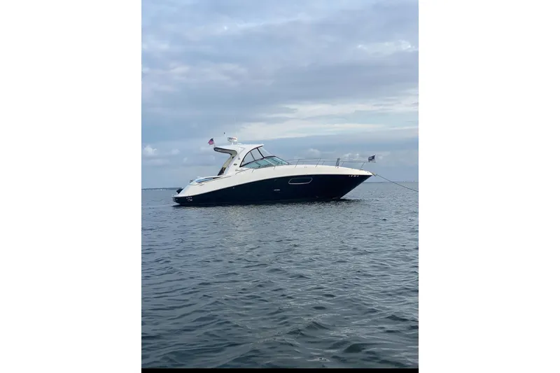 The 350 Sundancer. The generous dimensions of this express-style boat make it exceptionally qualified for cruising and entertaining, and an extensive list of sterndrives or inboards, lets you choose your preferred power. A roomy interior with forward V-berth, big mid-stateroom and convertible salon sofa can sleep six in comfort. Plus there's a full galley and head, and a 26-inch flatscreen TV with remote DVD player.