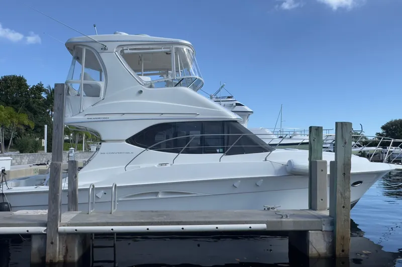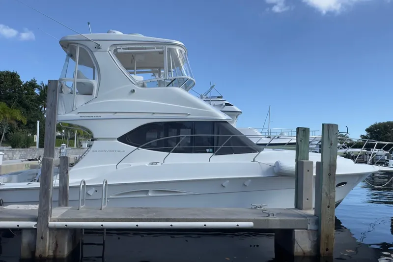 Interior Excellence Two private staterooms with innerspring berths offer comfort and generous storage. The Corian-surfaced galley is designed to meet all culinary needs, featuring premium appliances and a genuine hardwood floor for easy maintenance. The salon, featuring an electrically actuated sofa and an opposing dinette, is ideal for entertaining or relaxing in style.Outdoor Versatility The cockpit is designed for both leisure and sport—perfect for fishing or lounging with a couple of chairs. A standard wetbar can be customized with an icemaker or refrigerator, and the optional Fish Pak adds a rocket launcher, rod holders, washdowns, and a tackle center for serious anglers.Flybridge & Helm The spacious flybridge offers ample seating and storage. The helm console is ready for a full suite of electronics, and the optional hardtop with integrated electronics box expands your tech capabilities even further.