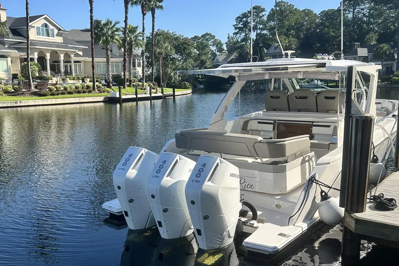 Introducing the stunning 2023 Tiara Yachts 38 LS, a remarkable cruiser that combines elegance with performance. With an overall length of 38 feet, this vessel boasts a sleek modified vee hull made from durable fiberglass, ensuring both stability and style on the water. Powered by three powerful Mercury Verado outboard engines, this boat promises exhilarating rides and reliable performance. The thoughtful design includes advanced features, enhancing the overall boating experience. Whether you're cruising along the coastline or enjoying a day out with friends, the Tiara Yachts 38 LS offers ample space and comfort for all your adventures. Its modern aesthetics and robust engineering make it a standout choice for those seeking both luxury and functionality in their maritime pursuits. Experience the thrill of the open water with this exceptional cruiser, perfect for creating unforgettable memories.