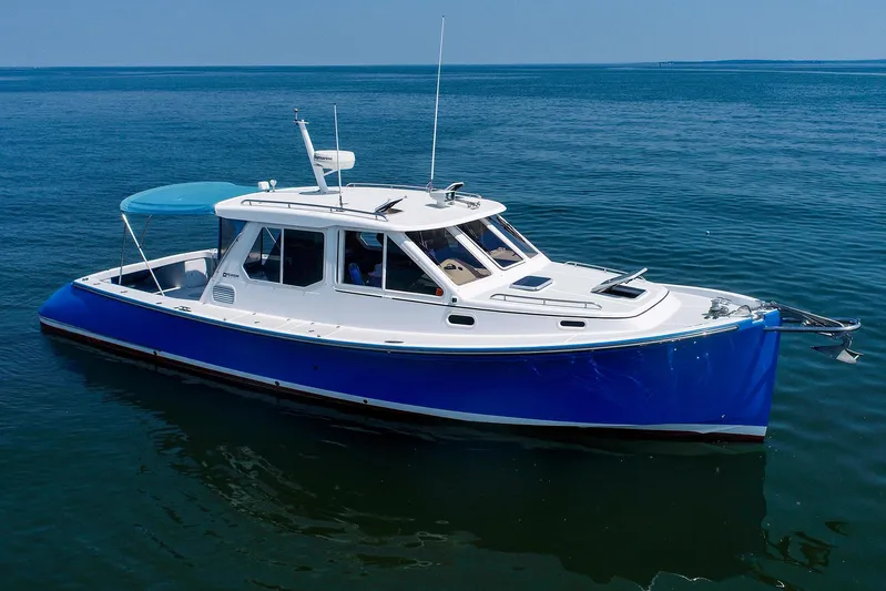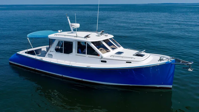 Designed with the active boater in mind, the True North 38 includes features such as a spacious swim platform, transom door, and plenty of storage for kayaks, paddleboards, or fishing gear. Its responsive handling, shallow draft, and robust hull make it well-suited for a variety of cruising grounds.