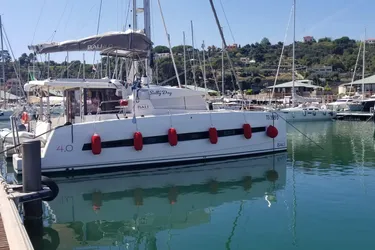 Il piano velico è pensato per una conduzione agevole anche con equipaggio ridotto, rendendo l’unità adatta sia alla crociera familiare sia a un eventuale impiego charter. La larghezza importante del catamarano assicura stabilità in navigazione e volumi interni superiori alla media della categoria. Gli spazi esterni comprendono un ampio pozzetto di poppa protetto, zone prendisole e passavanti comodi e sicuri, elementi che favoriscono una fruizione pratica e confortevole sia all’ormeggio sia in rada.