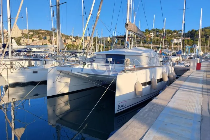 Television with decoder - Webasto heating - 25 K Mantus anchor with Mantus swivel joint + 100 m chain - New spare anchor with chain and line, never used - Awning to cover the bow and outdoor dining area with tables - Sunbathing area complete with cushions - 4 bilge pumps in the engine compartments - Stereo system with lights - Direct water system - 4 solar panels - 6 new batteries replaced in summer 2024 - Flexiteak throughout the deck - Mosquito nets for portholes - Life rafts for over 50 miles for 8 people - Outdoor chairs - Bow cockpit lights - Under lights forward - Under lights backward - Full windows covers - Rod holders - Battery chargers - Courtesy lights - USB sockets in every cabin - 2000 W Lofrans anchor winch - Entrance door - 220V shore power socket - Bathing ladder - Bow cockpit table - Black water system - 12V internal sockets - 220V internal sockets - Waterproof speakers - Autoclave - Hot water boiler - Tender cradle at stern - Tender with OB engine - Complete set of outdoor cushions - Bow protectors fitted in 2023 with handmade mould to protect from any logs while sailing - Ultra-light gangway with handrails - Bimini top.