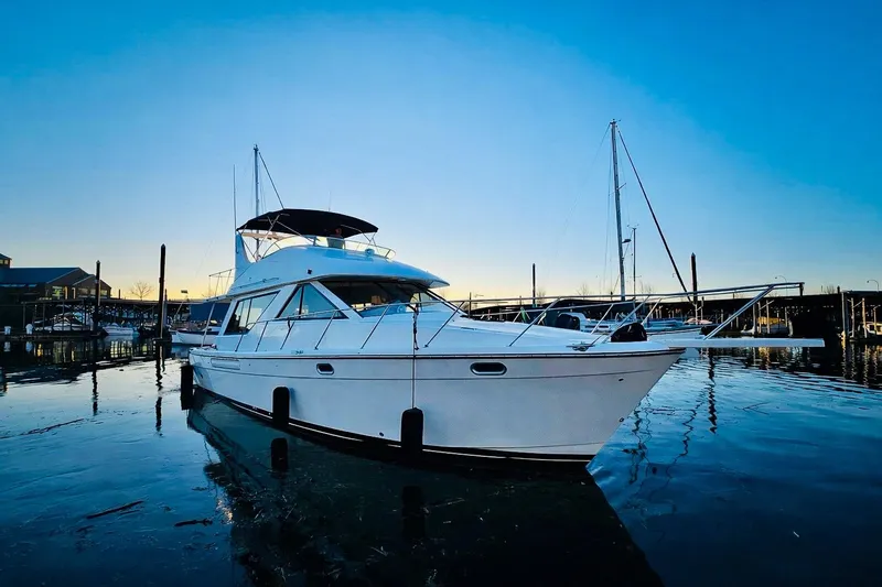 THIS 39’ BAYLINER 3988 MOTORYACHT 2002 HAS 1554 ORIGINAL HOURS ON TWIN CUMMINS 330HP DIESEL ENGINES. FRESHWATER MOORED. THE FLOOR PLAN FEATURES TWO STATEROOMS AND TWO HEADS WITH THE HARD-TOP OVER THE COCKPIT. DIESEL FURNACE, WATERMAKER, DRIPLESS SHAFT SEALS, 5KW WESTERBEKE. CALL FOR FULL DETAILS AND SHOWING.
