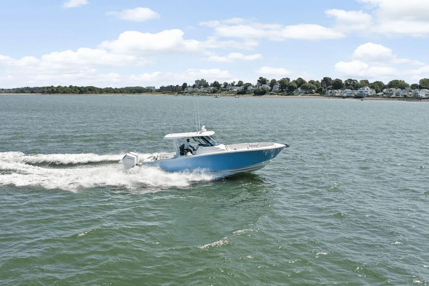 Turn heads at the dock and dominate offshore in this 2025 Bertram 39 CC, finished in a stunning Storm Blue hull gel color with matching hardtop under-gel color and coordinating hardtop leg accents. Built on Bertram’s legendary offshore-running hull, this 39 CC pairs classic sportfishing DNA with modern luxury and technology.