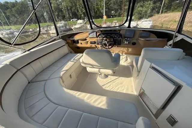 The Carver 396 Aft Cabin is one of the most popular designs in its class, celebrated for its spacious interior, unique styling, and raised walk deck design that maximizes livability onboard. This 2001 model has been well maintained and is powered by twin 8.1L gasoline engines with 1,270 hours, offering a strong balance of performance and reliability. Inside, the yacht features an expansive "great room" salon, flooded with natural light and designed with open sightlines- perfect for entertaining or relaxing in comfort. Accommodations include two private staterooms with island berths, each with its own ensuite head, making this yacht ideal for extended cruising with family or guests.