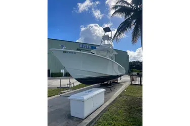 Introducing the 2016 Contender 39 ST, a remarkable center console boat that combines performance and style. With an impressive overall length of 39 feet, this vessel is designed for both adventure and relaxation on the water. Crafted from durable fiberglass, the hull ensures stability and resilience, making it perfect for various marine conditions. Powered by three robust Yamaha engines, each delivering 300 horsepower, this boat offers exhilarating speed and reliability, with a total of 1,748 hours of operation. The thoughtful design includes ample space for equipment, enhancing your boating experience. Whether you're cruising along the coast or engaging in fishing expeditions, the Contender 39 ST promises an enjoyable journey. Its sleek profile and powerful performance make it a standout choice for boating enthusiasts seeking both functionality and elegance. Experience the thrill of the open water with this exceptional vessel.