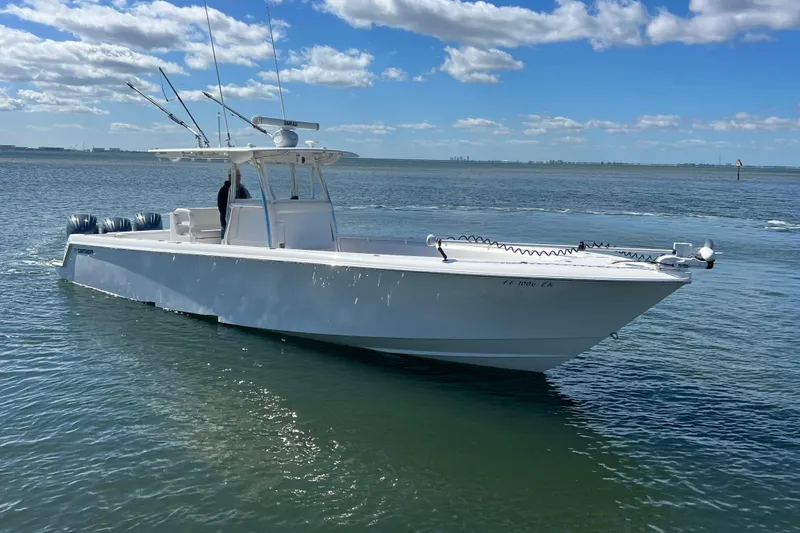 This 39 ST is an incredible build and set up incredibly well for serious fishing. It is powered by triple Yamaha 300 HP 4-Strokes with only 260 hours on them. The engines have Yamaha Warranty on them till 1/18/2028. loaded with options accessories and custom upgrades. The boat is set up with Dual SIMRAD 16" Displays, Open HALO Array Radar,  Auto Pilot, VHF Radio & FLIR Nighvision Camera. It also has a Rhodan Trolling Motor, Carbon Fiber Outriggers. The boat comes with a Full Boat Cover & Stern Shade. Other options include, Coffin Box Lounge w/ Arm Rests, & Electric Head. This boat has so much deck space it incredible. This thing is built and set up to run fast and far offshore!