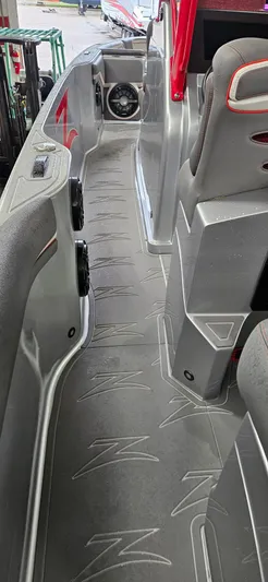 Cruises nicely in the 45-50 mph and will run north of 80 at WOT. This is a very cool piece and loaded with options such as custom paint inside and out, forward lounge seat with storage, 2nd row seating, center helm bolster w built in throttle/binnacle, rear electronic sureshade, powdercoating option, led cupholders, folding footrest, upgraded JL audio pkg, underwater lighting, lithium battery pkg, transom shower, stainless windlass, STR jack plates and much much more !!
