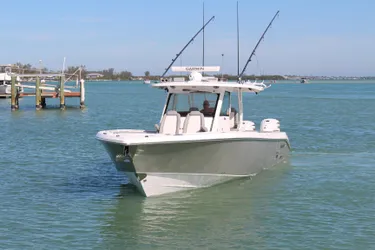 Sitting pretty in the beautiful waters of Longboat Key, Florida, this 2024 Everglades Center Console is in flawless, like-new condition and built for serious fun on the water. With a 5-year ceramic coating, the hull looks showroom fresh and is protected for the long haul. Power comes from triple Yamaha 450s—still under warranty until November 2030—giving you all the muscle you need for fast runs offshore, and the Helm Master EX Joystick makes docking easy even in tight spots. When you're done for the day, just hit the Reverso engine flush system and you're good to go.