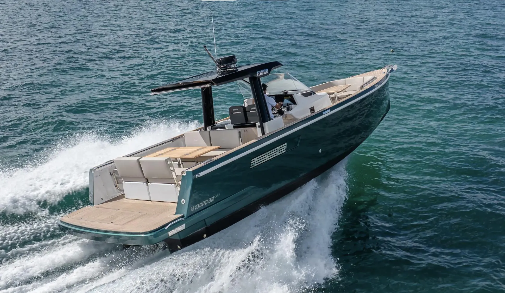 • The FJORD 38 open redefines the sport cabriolet concept on water, melding exhilarating performance with cutting-edge design. The extended T-top, an iconic style feature, now provides unprecedented sunshade thanks to an electric bimini, setting new standards in its class.
