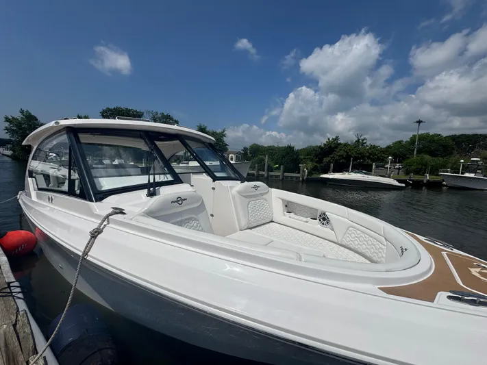 • Spacious Layout: Dual console configuration with a generous cockpit for entertaining, an expansive bow lounge, and multiple seating areas for ultimate comfort.