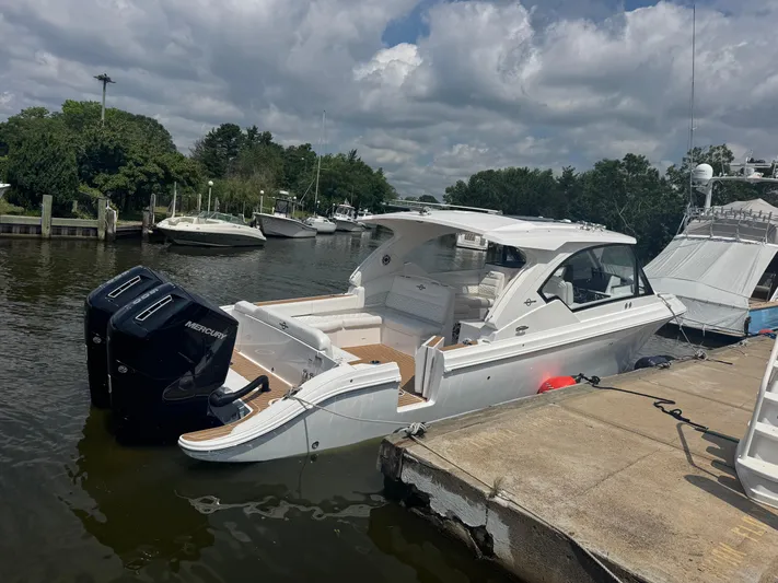 • Powerful Performance: Powered by twin Mercury 600HP outboards, the 39DX effortlessly reaches thrilling speeds while maintaining exceptional fuel efficiency.