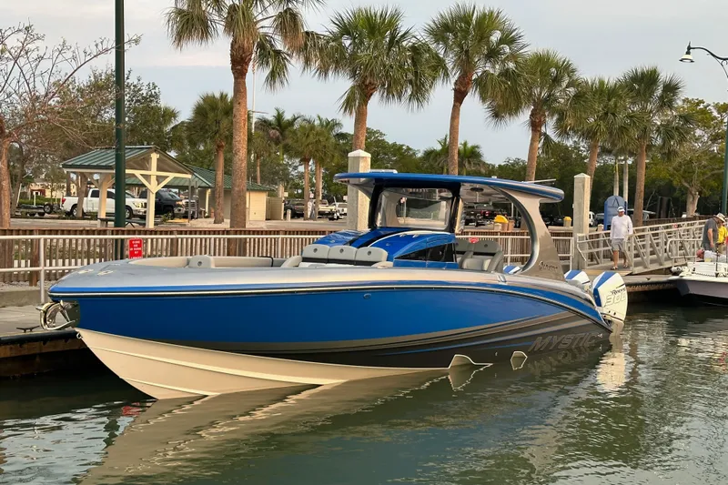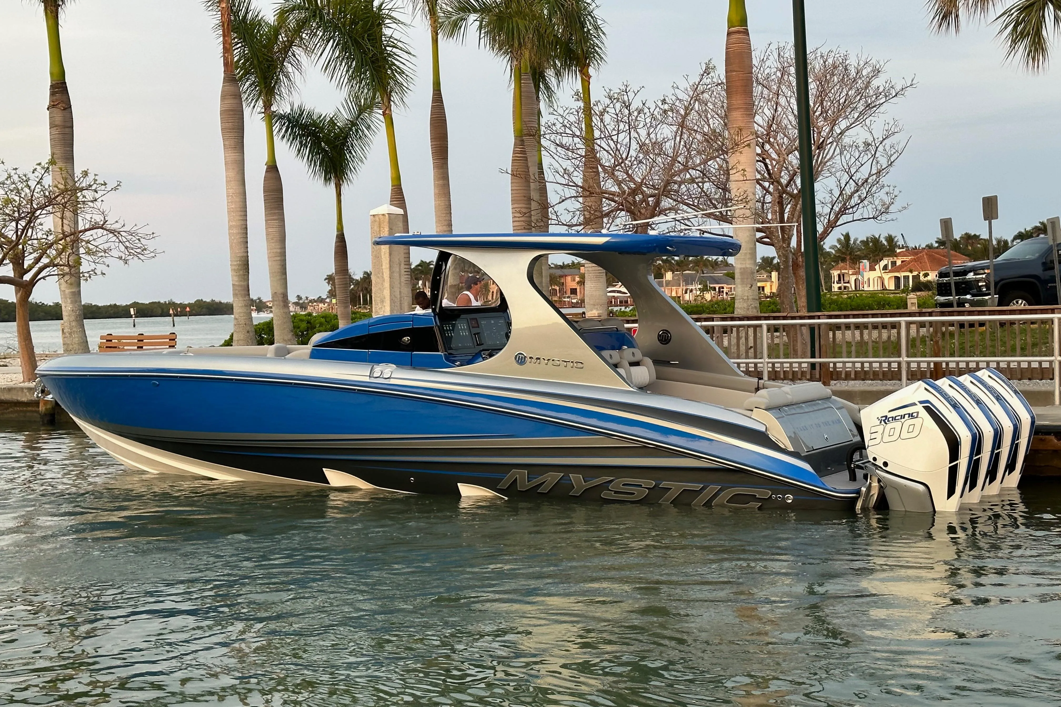 2023 Mystic M3800. Powered by Quad Mercury Racing 300R with Joystick controls. One owner boat with only 190 hours on it. Engines have recently had the 300 hour service work performed.