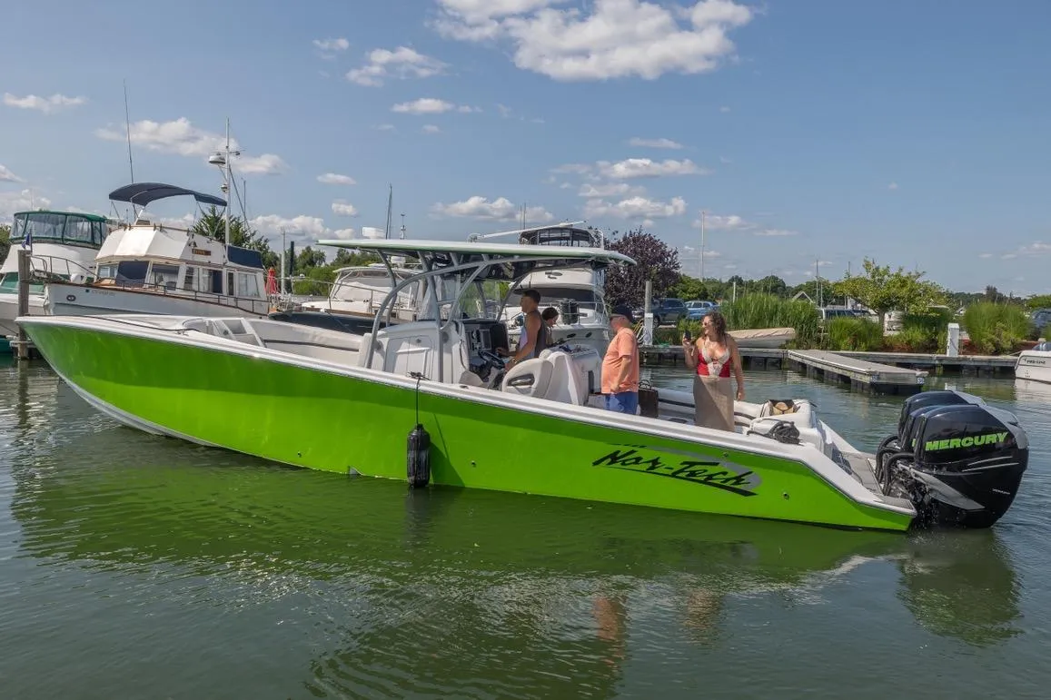 Big price drop come see the boat before we pull it out of the water this weekend. This beautiful Nortech 390 has been maintained with an open checkbook and serviced every year with only 680 hours on triple 300 Mercury engines. The boat is wrapped Green with no damage to the boat under the wrap. we show pictures of the original paint that is black with a silver stripe in the listing. Boat is bottom painted. Message me with any questions.