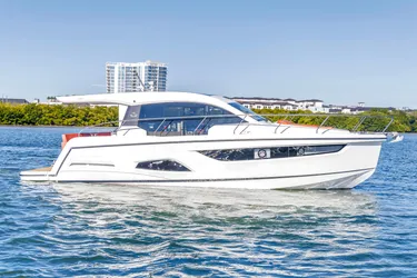 Introducing the stunning 2020 Sealine C390, a remarkable cruiser that embodies elegance and performance. With an overall length of 39.3 feet, this vessel is crafted from durable fiberglass, featuring a modified Vee hull shape that ensures a smooth and stable ride on the water. Powered by twin Volvo Penta D6-380 diesel engines, each delivering an impressive 509.59 horsepower, the C390 promises exhilarating performance with just 170 hours of use. The inboard/outboard configuration and stern drive system enhance maneuverability, making it a joy to navigate. Designed for comfort, this cruiser includes two heads, providing convenience for guests. With a cruising range of 276 miles, the Sealine C390 is perfect for extended adventures on the open sea. Experience the perfect blend of luxury and functionality with this exceptional vessel, ideal for those seeking unforgettable maritime experiences.