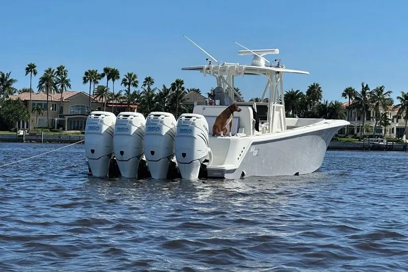 Powered by quad Mercury 350 Verado outboards with approximately 1,000 hours, this vessel offers impressive performance and redundancy for offshore runs. The boat has been covered lift kept and has no bottom paint, reflecting attentive ownership and preservation.