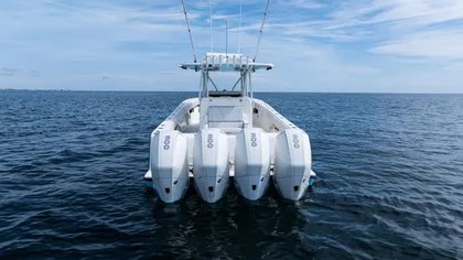 This 2021 SeaVee 390B is a highly customized, lift-kept center console built for the serious angler who demands performance, reliability, and comfort. Powered by quad Warm White Fusion Mercury engines, this boat delivers speed and efficiency while offering an incredible array of features for both offshore fishing and luxury cruising. Every detail has been carefully spec’d — from upgraded Garmin electronics and JL Audio sound to custom baitwell systems, dive door, and premium seating.
