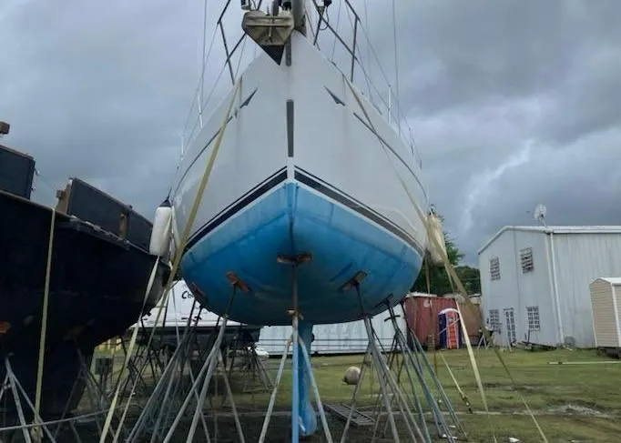 This vessel is carefully stored on the hard for Hurricane Season and is available for showings!