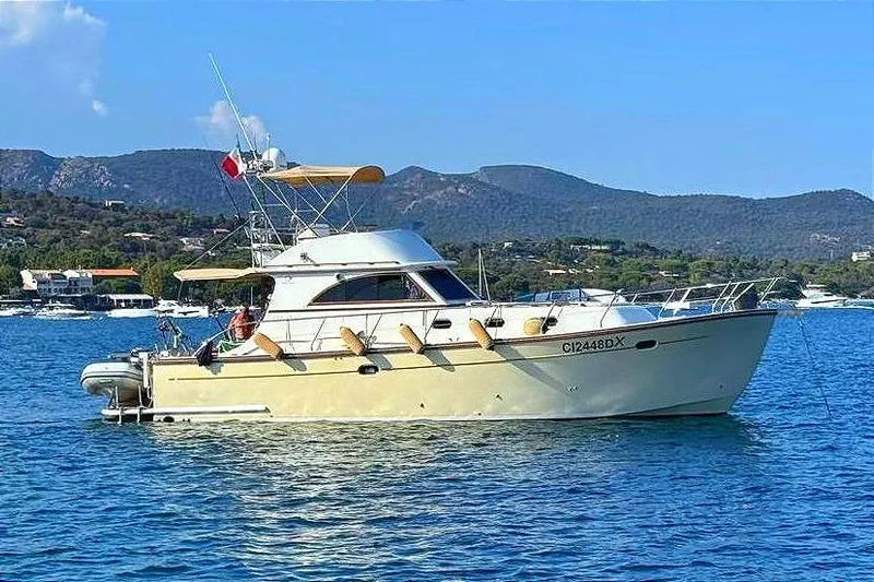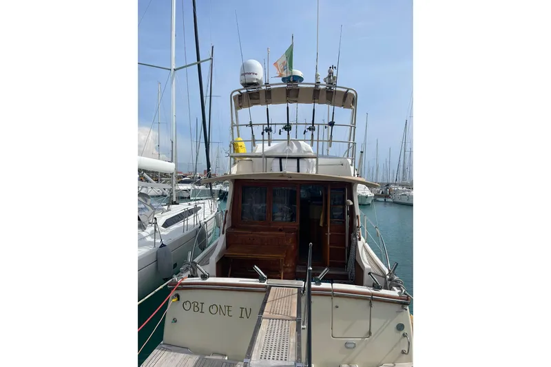 Questo Cantieri Estensi 440 GOLDSTAR FLY del 2004 (Immatr. 2005) incarna l'eleganza classica del design "Lobster Boat" italiano, unendo linee senza tempo a una robusta costruzione in VTR. Con una lunghezza fuori tutto di 13,96 metri e un dislocamento di 15.000 Kg, è certificato in Categoria di Progettazione A (Altomare), ideale per crociere confortevoli e sicure su lunghe distanze.