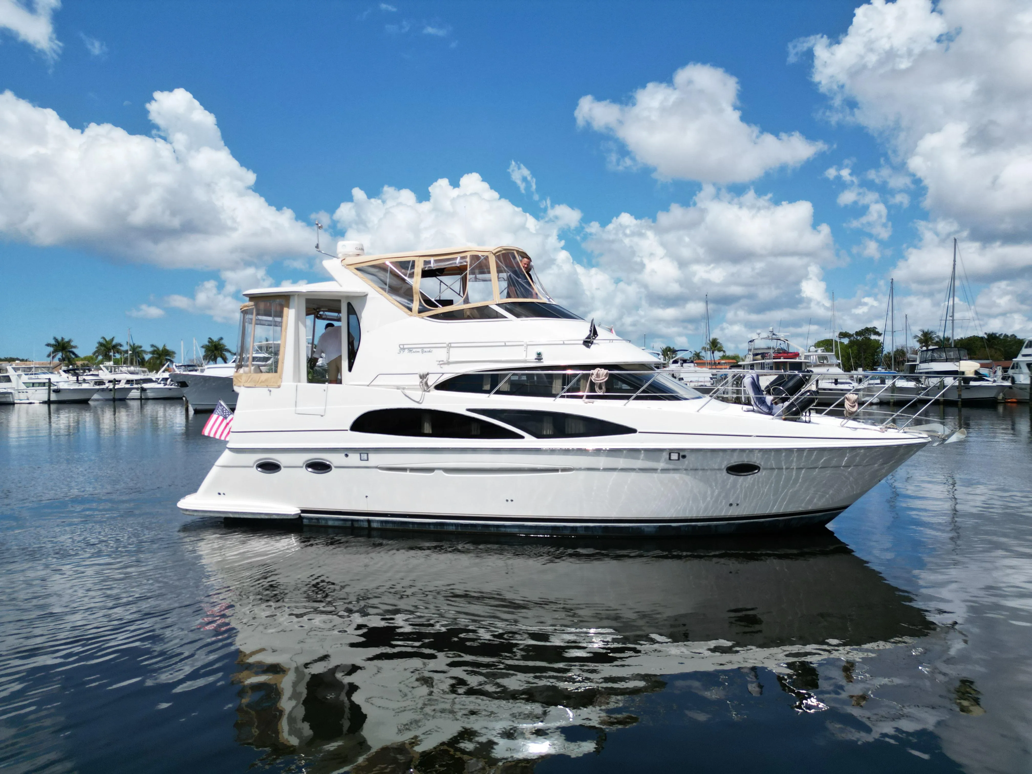 Carver 390 CPMY is your perfect Great Loop and liveaboard. She is powered with a twin 370 hp Volvo diesel (481 hours), equipped with newer Garmin electronics, an Onan diesel generator, a newer enclosure, and much more. The spacious layout includes a large salon, 2 staterooms, and two heads.