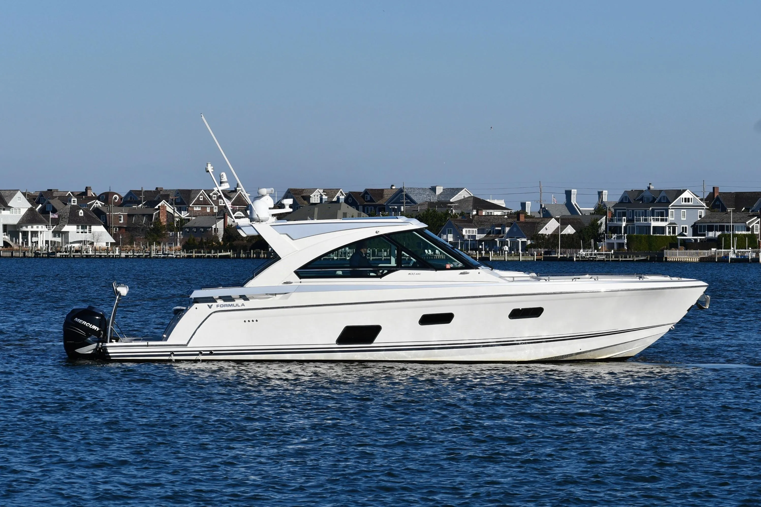 At 40’ in length with a 12’ beam, the 400 SSC centers on the full-height windshield and coupe top design that encloses the entire width of the cockpit, allowing guests to move beyond the confines of a center console’s narrow, pilothouse tradition. The Formula Crossover SmartZone™ concept creates separate areas for a variety of activities while encouraging connections among guests, from the expansive bow to triple helm seating to the outdoor kitchen and U-shaped lounge aft with convertible rear-facing sunpad and extended swim platform.
