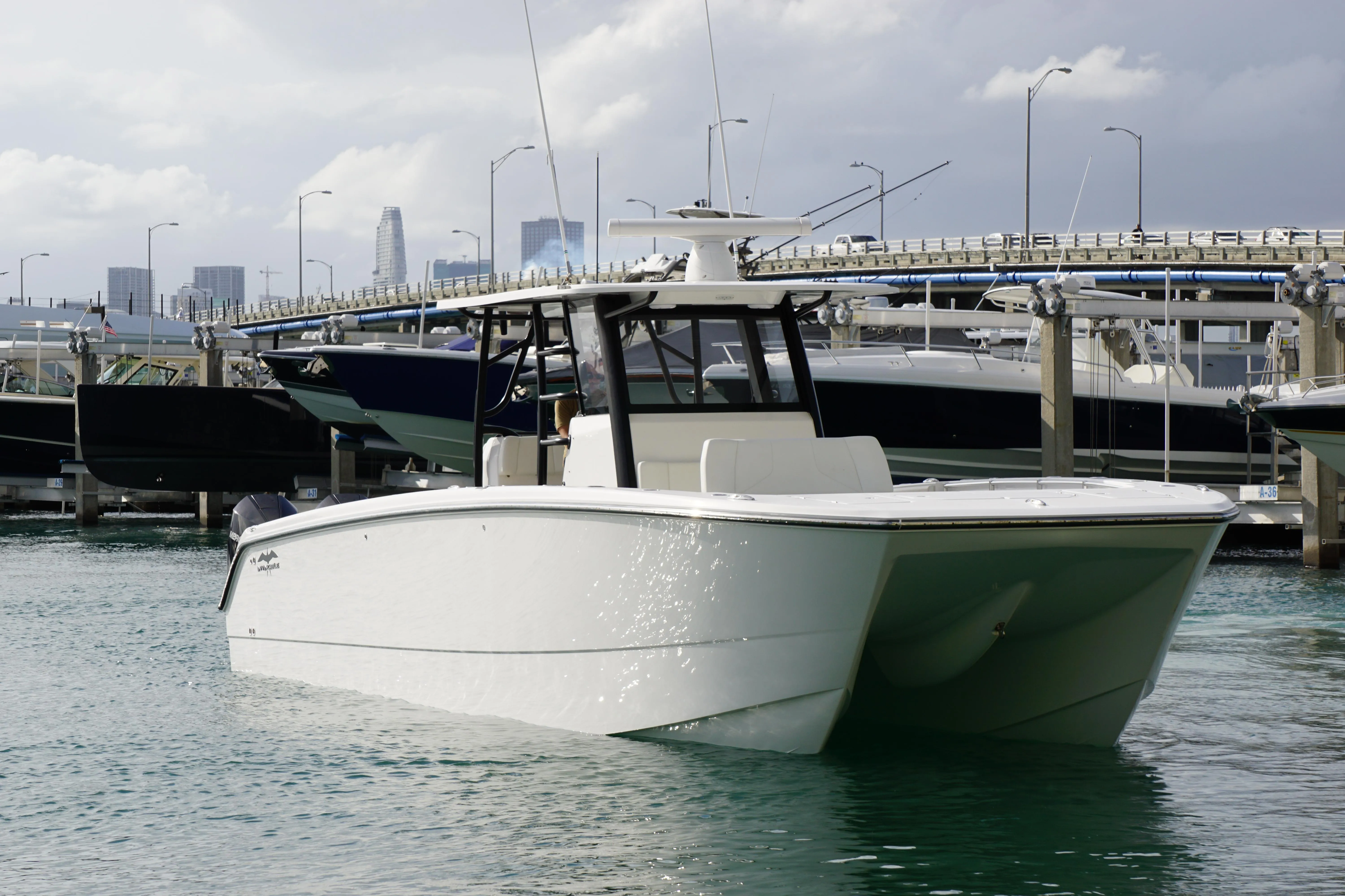 Introducing the 2022 New Invincible 40 ft Catamaran with Quad 300 Mercury Engines, a powerhouse of performance and luxury. With four 300-horsepower Mercury engines propelling you across the waves, this vessel offers unparalleled speed and agility for cruising, fishing, or leisurely outings. Its spacious deck layout, deluxe sound system, and sleek design make it perfect for entertaining guests, while state-of-the-art fishing features such as electronics, baitwell, and rod holders cater to serious anglers. Built to the highest standards of quality and reliability, backed by solid warranties, this catamaran promises an exceptional boating experience. Don't miss out on the opportunity to own this remarkable vessel - contact us today to schedule a test drive and make your boating dreams a reality.