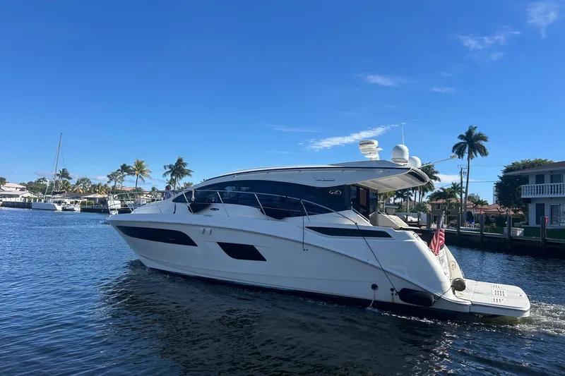 This 2016 Sea Ray 400 Sundancer is powered by twin Cummins QSB 6.7L engines with 480 HP each and 1,110 hours, with the 1,000-hour service already completed. It features Zeus pod drives, joystick steering, adjustable trim tabs, and a Mercury digital display. Navigation and control systems include dual Raymarine electronics, autopilot, VHF radio, and a dual-band Yacht Controller for wireless docking. For anchoring, it is equipped with an electric windlass anchor system. Onboard entertainment is supported by a Rockford audio head unit, Infinity speakers, and a TV with DVD player located in the master stateroom. The boat is powered by a KOHLER generator with 994 hours and cooled by two A/C units. The galley includes a full-size layout with an electric two-burner stove, refrigerator, and microwave. Interior accommodations feature a saloon with lighting, a master stateroom with carpeted seating and bedding, and a guest stateroom offering three separate beds, two of which can be combined into one. The vessel has a pump-out head with a full-size shower. Exterior features include an extended swim platform, a bow sun bed, walk-around side decks with railing, aft seating with a table, a walk-through glass door leading to the cockpit entertainment area, cockpit seating with floor lighting, an adjustable sunroof, and a neatly stored control panel located behind the cockpit seating. WE ACCEPT ALL TRADES AND FINANCING AVAILABLE.