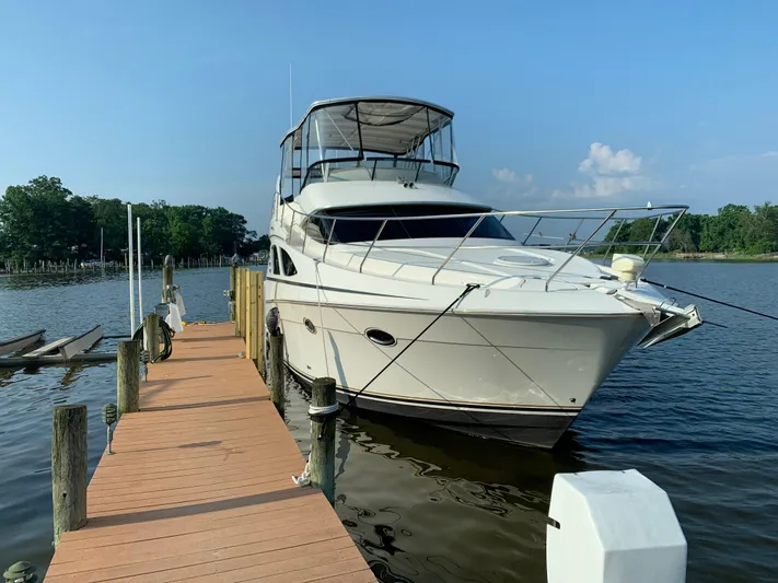 Offered for sale is a well-equipped 2005 Silverton 38 Sport Bridge powered by twin Cummins 6BTA 370HP turbo diesel engines with approximately 760 original hours. The boat recently completed the 1,000-hour Cummins service in 2024, providing peace of mind for the next owner. A Kohler diesel generator with 461 hours supplies reliable onboard power.