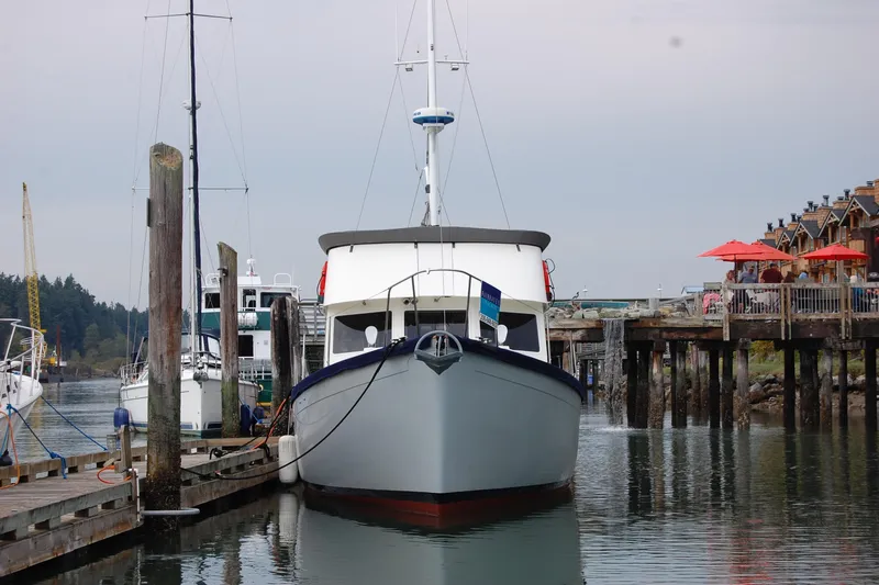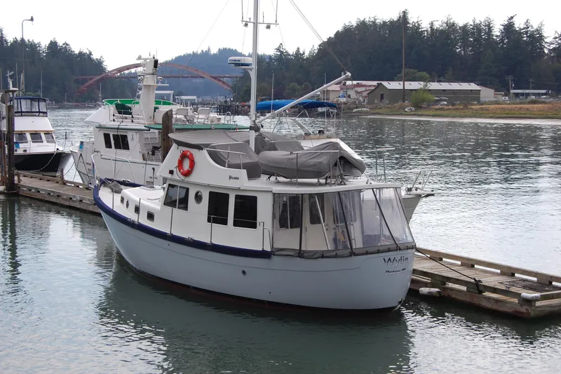 Complete refit on this beautiful Willard 40. She is in near bristol condition. Newer John Deere(1000 hrs), Northern Light Genset, Kubola Diesel hydronic heat, bow and stern thrusters. Fuel tanks replaced, Newer paint, outstanding brightwork, newer electrical throughout. Two staterooms, two heads. Nice updated galley with propane stove and newer appliances. Large flybridge with seating for 8, stairs fold out from flybridge making bow access easy. Truly a turn key vessel.