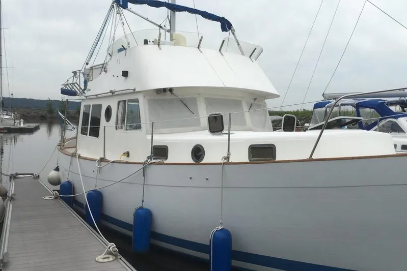 Willard boats feature robust, hand-laid fiberglass hulls known for their exceptional durability and long-term seaworthiness, reflecting the company's military-grade construction standards and pioneering role in fiberglass trawler yacht building. These sturdy hulls, often 1.5 inches thick or more on older models, provide a solid foundation for heavy-displacement vessels designed for rugged, extended cruising.